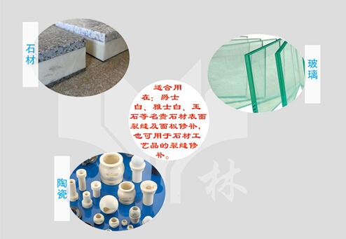 可用于石材與石材、石材與玻璃的復(fù)合、石材工業(yè)中用來補(bǔ)強(qiáng)、填補(bǔ)具有多孔及表面的裂紋、小孔洞、砂眼、螞蟻路以及凸凹不平的各種天然石材和混凝土、提高表面質(zhì)量、也可用于玻璃紗網(wǎng)加強(qiáng)易碎石板,提高成品率。